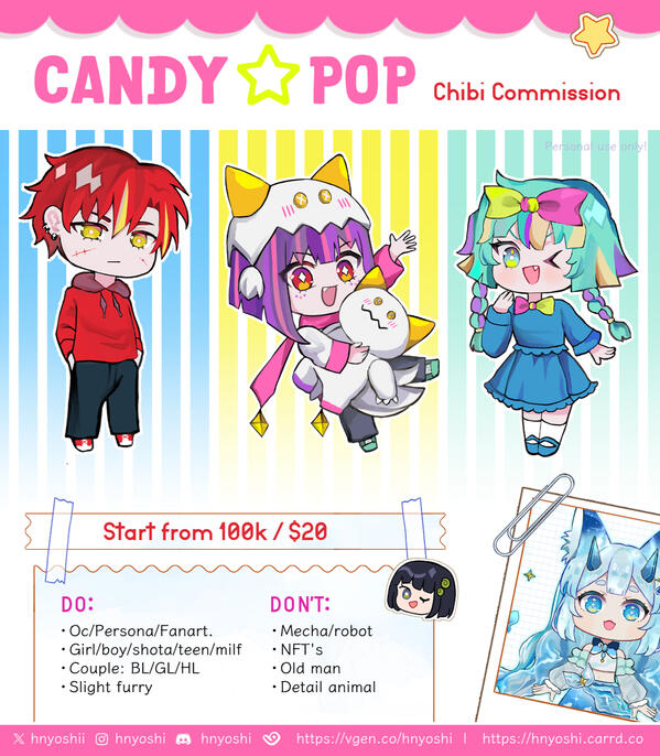 When you upload your order/commission please credit me @hnyoshi (instagram) or @hnyoshii (X/Tiktok)